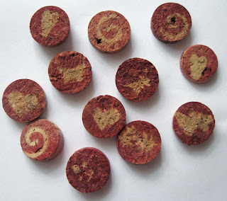 Острый режущий предмет, у меня ножи как раз наточены были и режем наши пробки на кружочки. Пробка пробке рознь. Они отличаются по цвету, по плотности/спресованности, по размеру частиц из которых состоят,это все лучше видно на срезе.